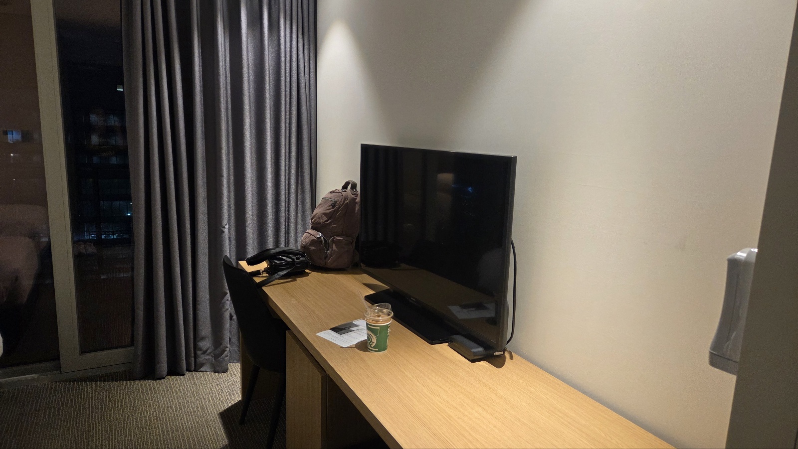 딱 2명 지내기 좋은 크기의 룸입니다. 다만 테이블이 따로 없어서