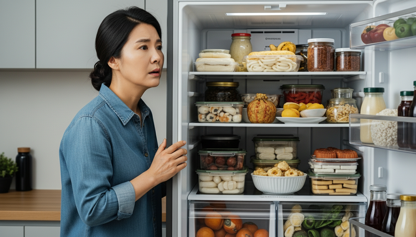 냉장고가 꽉 찼는데 보기만 해도 한숨이 나오죠.