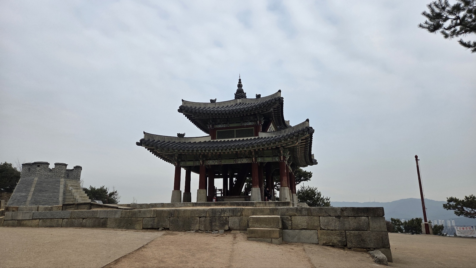 자 입구에 있는 계단을 올라와서 서장대까지 가려면 다시 계단을 올라야 합니다.