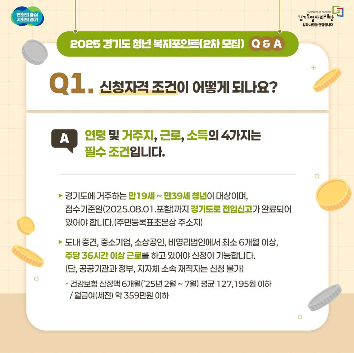 공지사항 공지사항 더보기 2025.0725 [모집 공고] 2025년 경기도 청년 복지포인트 2차 모집 공고 (8.1.~ 8.12.18시) [모집 공고] 2025년 경기도 청년 복지포인트 2차 모집 공고 (8.1.~ 8.12.18시) 1. 신청기간 : 20