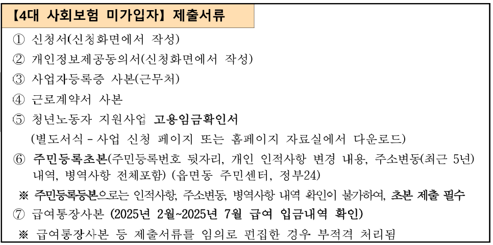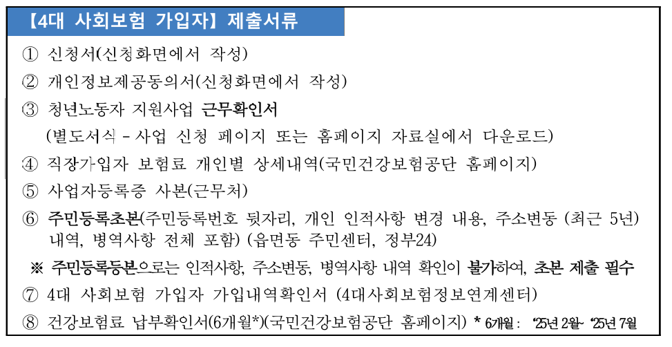 - 제출서류는 접수기준일 (2025.8.1.) 이후 발급된 서류만 인정