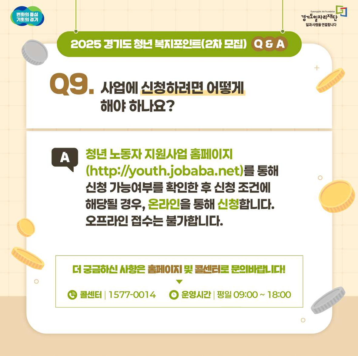 ▶ 청년 노동자 지원사업 콜센터 : ☎ 1577-0014 (평일 09시 ~ 18시)