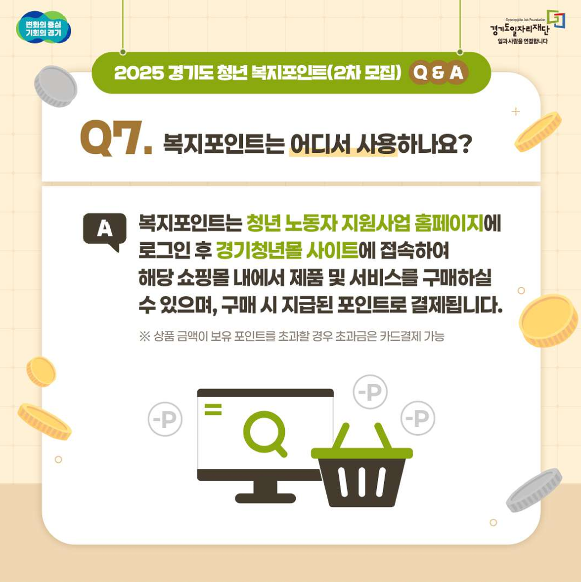 지정된 복지몰에서 사용가능한 포인트로 지급(2회 분할 지급) |