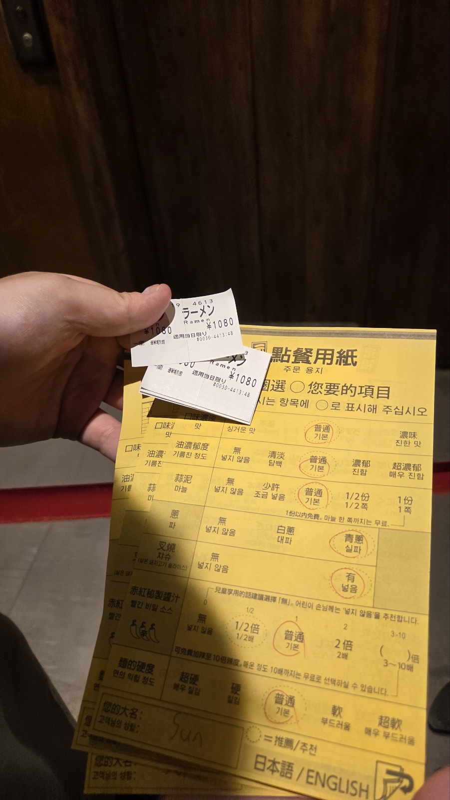 일단 자판기에서 돈을 넣고 주문을 한후, 기본 항목에 동그라미를 표시하면 됩니다.