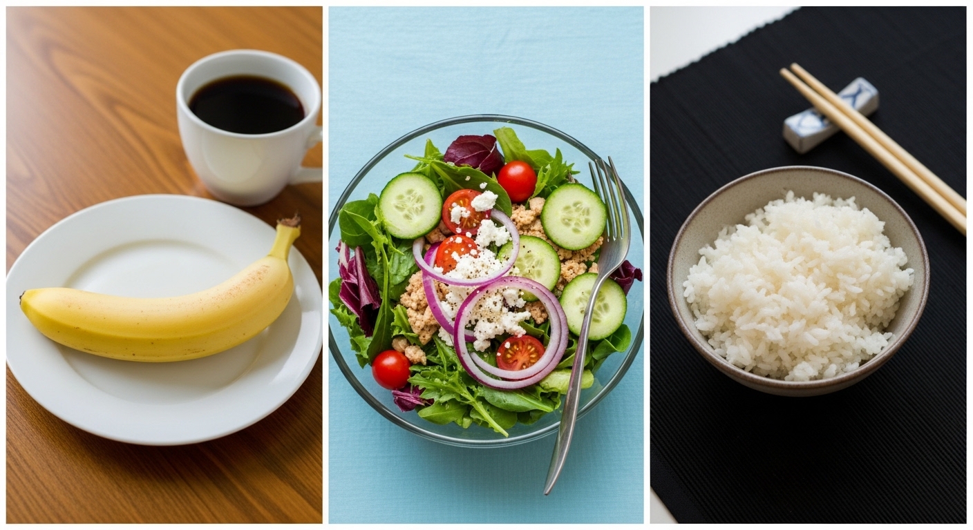 아침엔 바나나 하나, 점심은 샐러드, 저녁도 밥 반 공기만 먹었는데...
