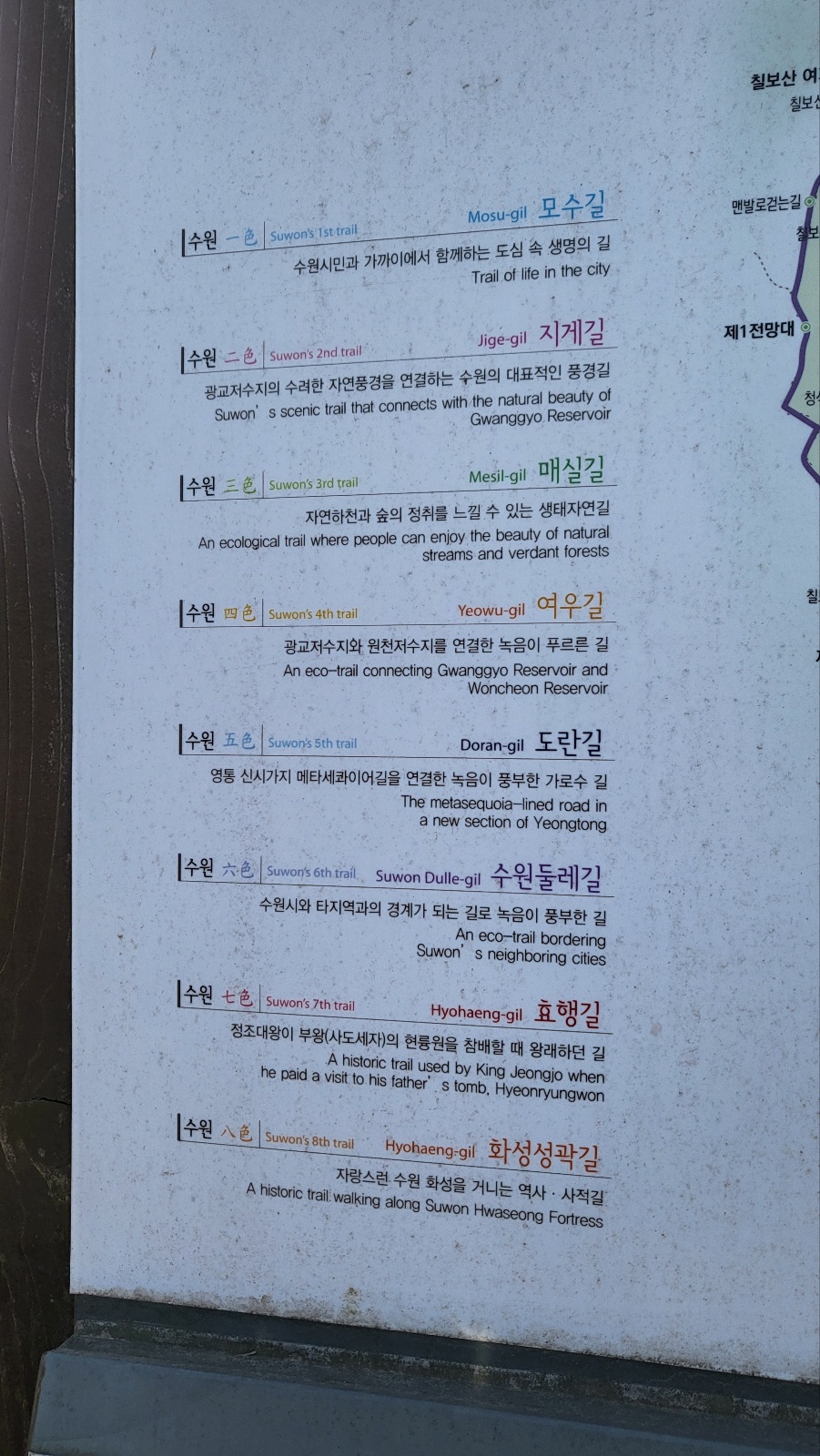 요즘 걷기에 한창 꽂혀 있어서 수원에도 있지 않을까 했었는데 정말 있었네요 이렇게 가까운 곳에.. 한번 알아봐야 겠습니다.