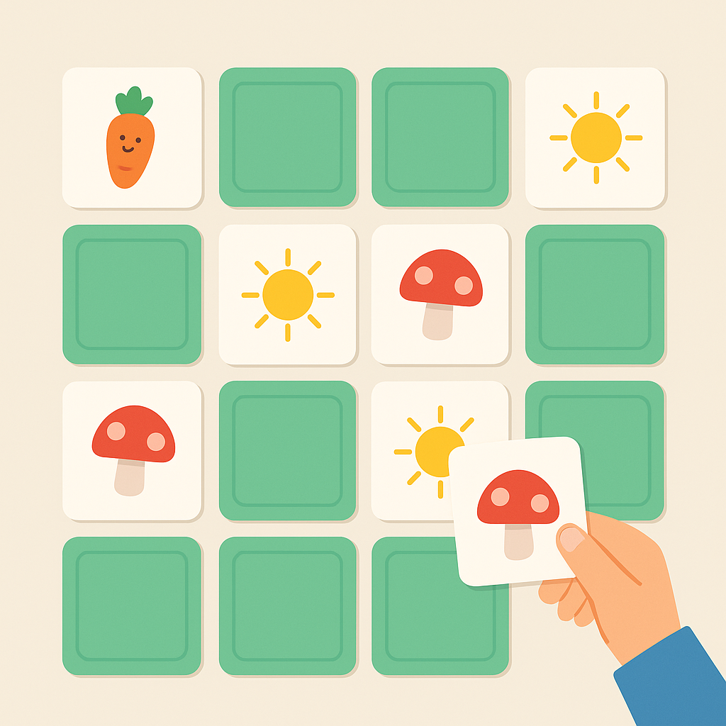 뒤집힌 카드의 위치를 기억하고 같은 그림을 찾는 놀이로,